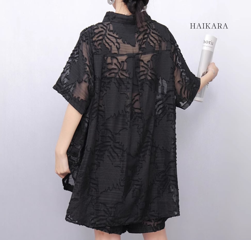 ★【 シースルー感のある生地を取り入れた個性的なデザイン、シックな風合いのセットアップ 】