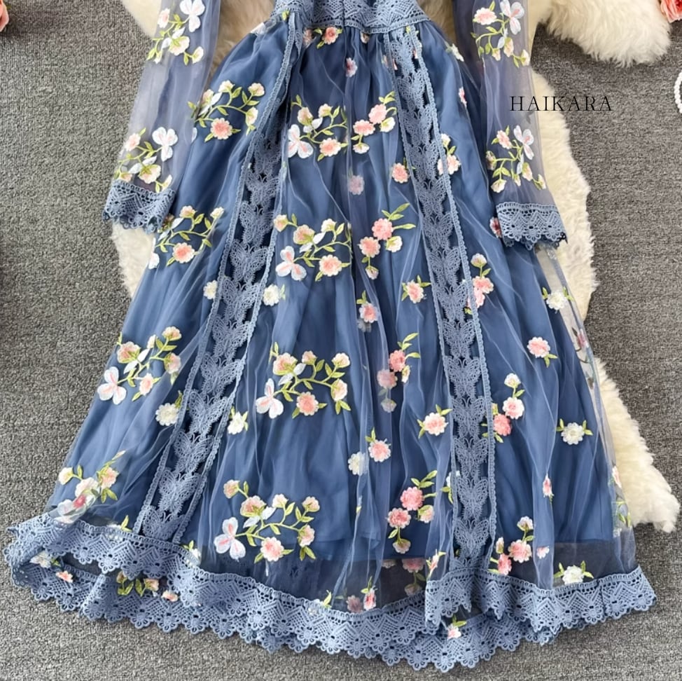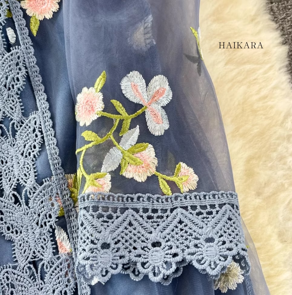 ★【 繊細な花柄刺繍とレースを贅沢にあしらった、華やかなワンピース。