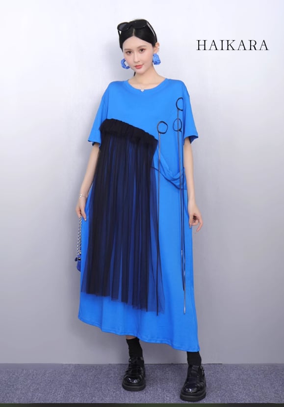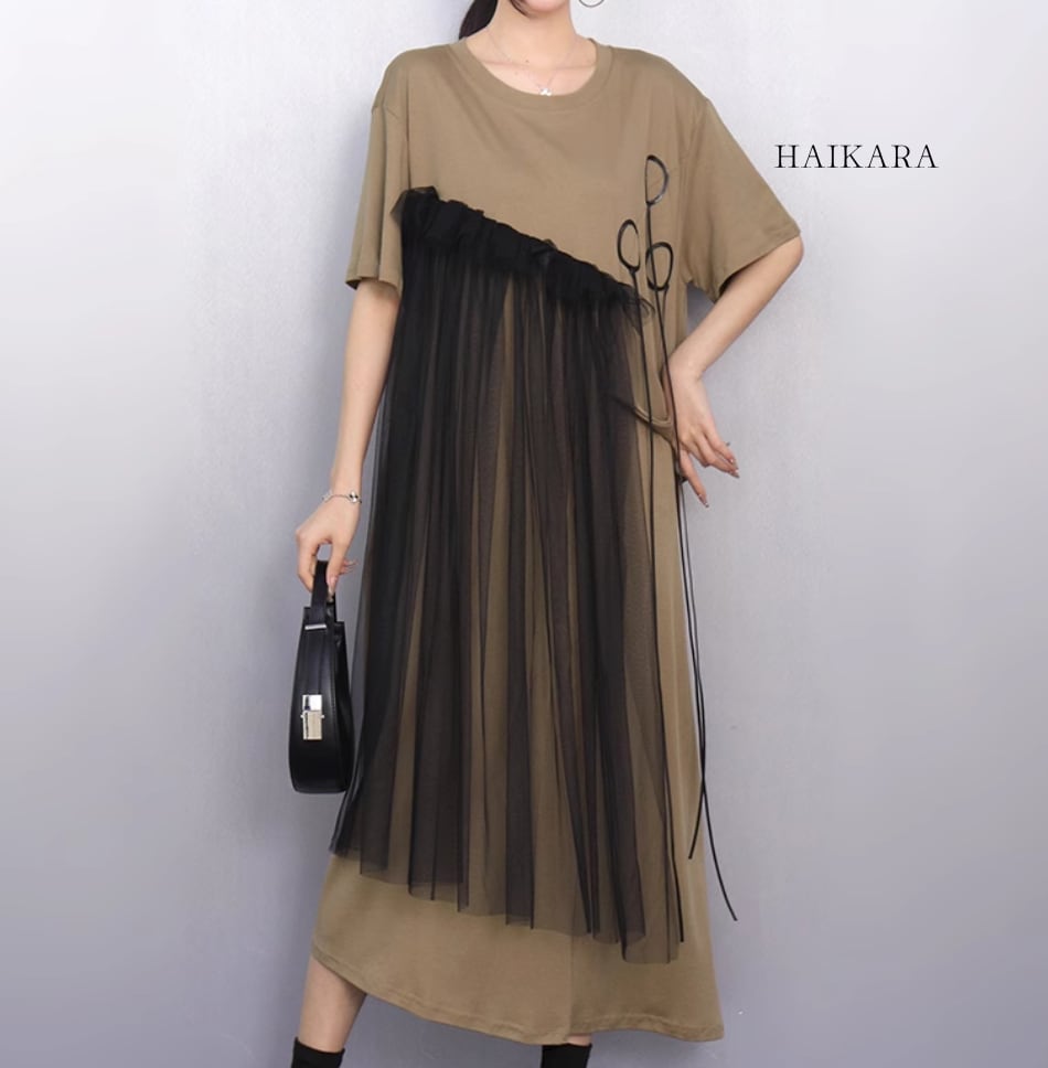(NEW) Asymmetrical Tiered T-Shirt Dress with Tulle Detail