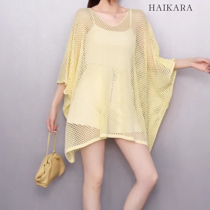 (NEW) Loose Knit Mesh Dolman Sleeve Tunic