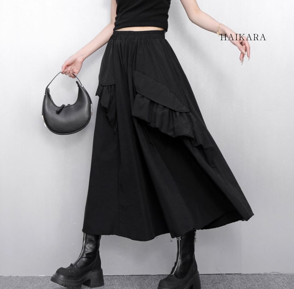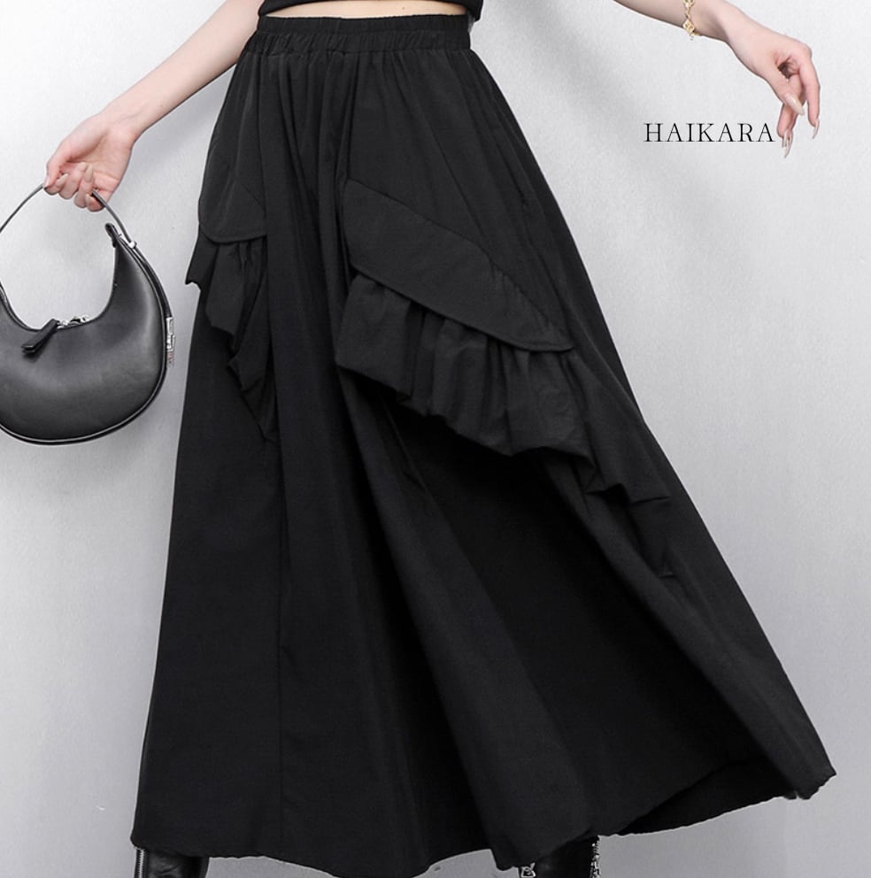 ボリューム感のあるシルエットで、歩くたびに優雅に揺れます。