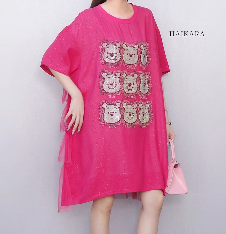 ★【 可愛らしいグラフィックプリントが特徴のオーバーサイズTシャツワンピースです。