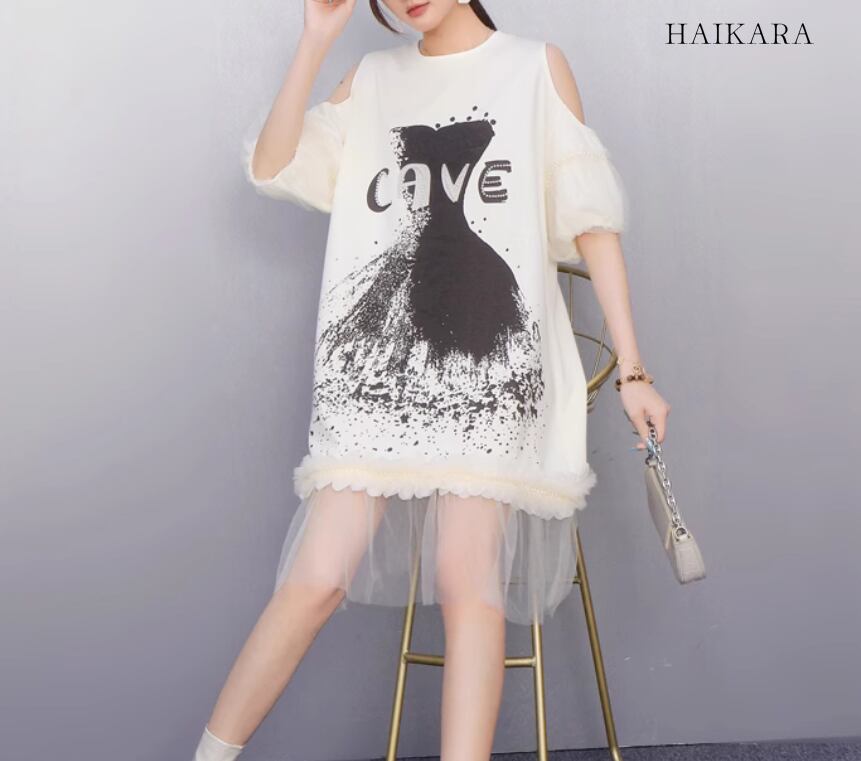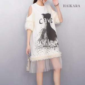 裾にもチュールフリルが施されており、カジュアルながらもフェミニンな印象を与えます。