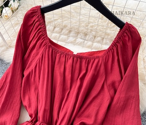 ★【 レースアップデザインの背中と、ティアードのスカート部分が特徴のロングワンピースです。