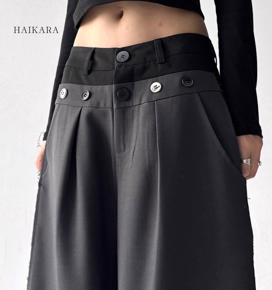 ★【 ウエスト部分のデザインが特徴的な、クールな雰囲気のワイドパンツです。