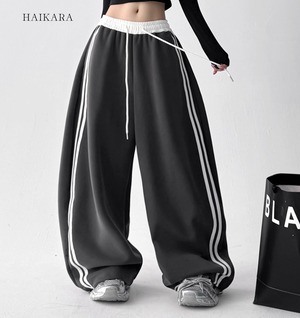 ★【 サイドのラインとウエスト部分がポイントになった、スポーティーなワイドパンツです。