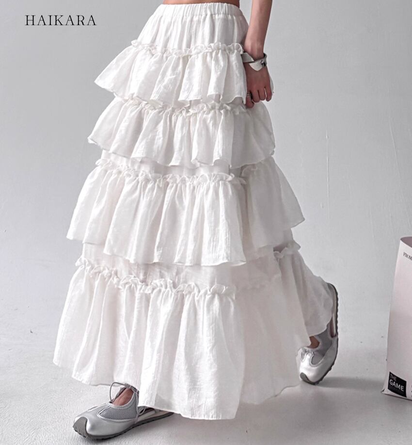 ★【 ティアードフリルがゴシックで華やかな印象を与える、ロングスカートです。