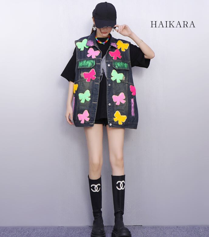 ★【 蝶のワッペンがアクセントになった、デニム地のベストです。