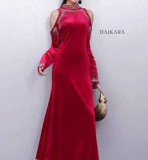 ★【 肩出しデザインとパール風ビーズの装飾が特徴的な、ゴージャスなワンピースです。