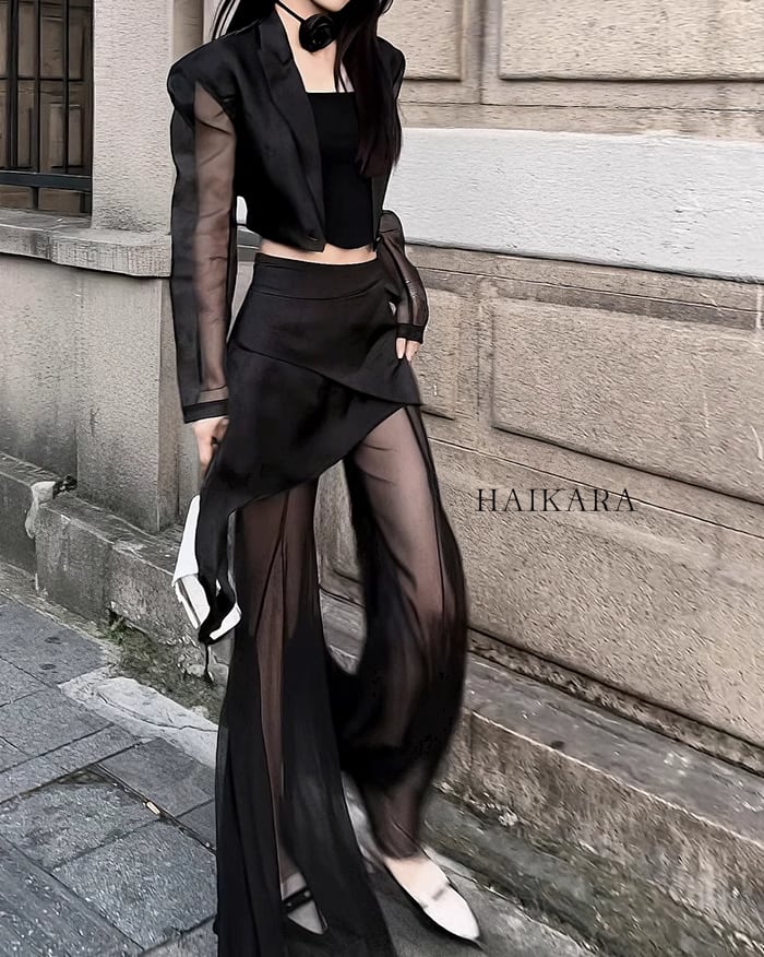 ★【 メッシュ生地を合わせることでメリハリ感のある見た目に、ショート丈ジャケットとメッシュ生地のロング丈パンツの他には無い最高なオシャレ感のセットアップ 】