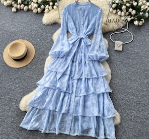 ティアードスカートのレース装飾が、動くたびに柔らかな表情を添える一着です。 】