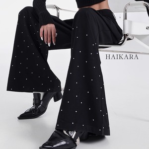 ★【 裾にきらめくストーンをあしらった、広がりのあるシルエットが特徴のワイドパンツです。