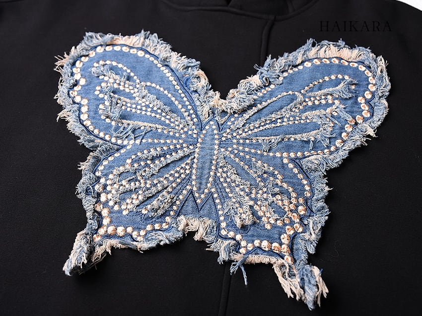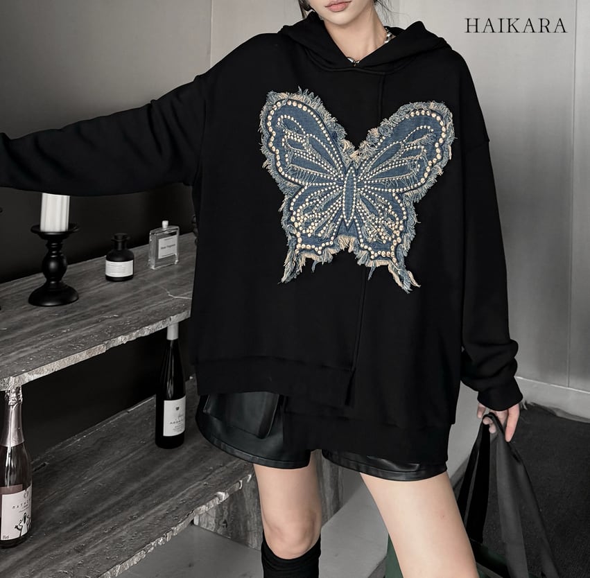 (NEW) Denim Butterfly Patch Oversize Hoodie
