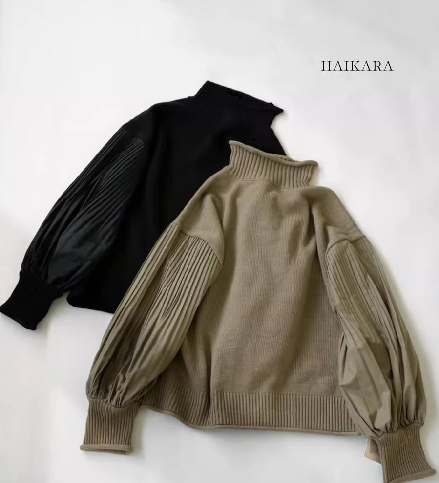 (NEW) Pleated Sleeve Knit Turtleneck Sweater