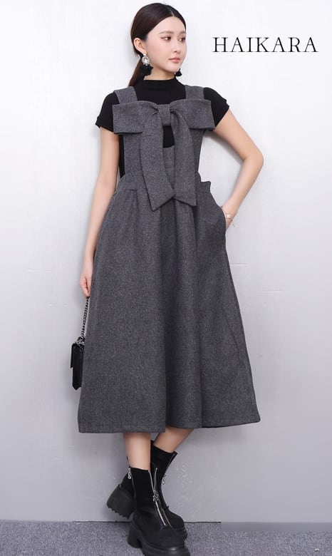 (NEW) Midi Jumper Skirt with Large Bow Straps