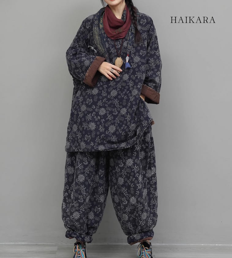 ★【 繊細な花柄プリントと、チャイナボタンが特徴の中綿入りセットアップです。
