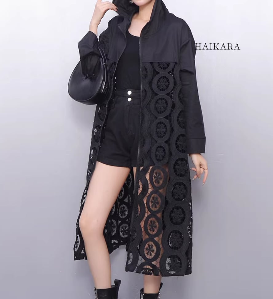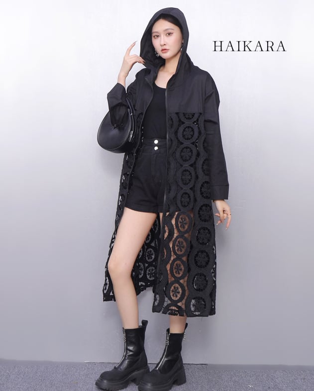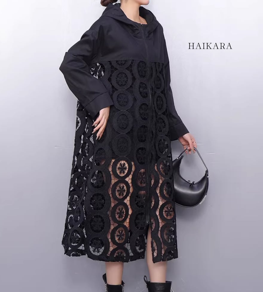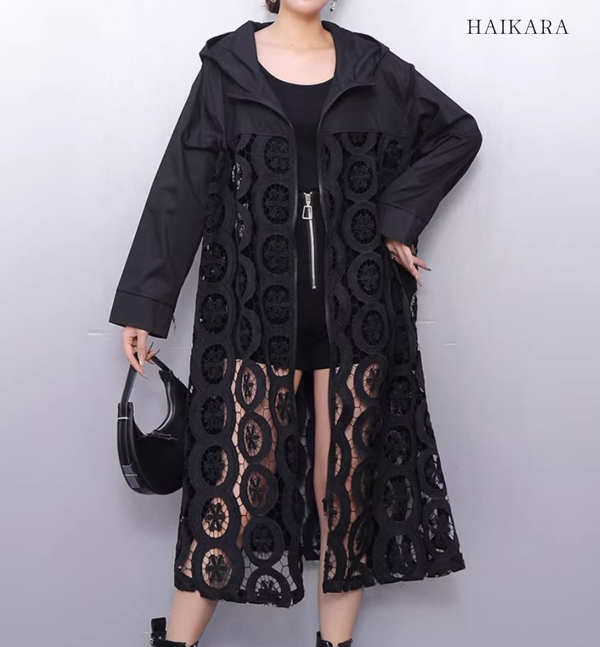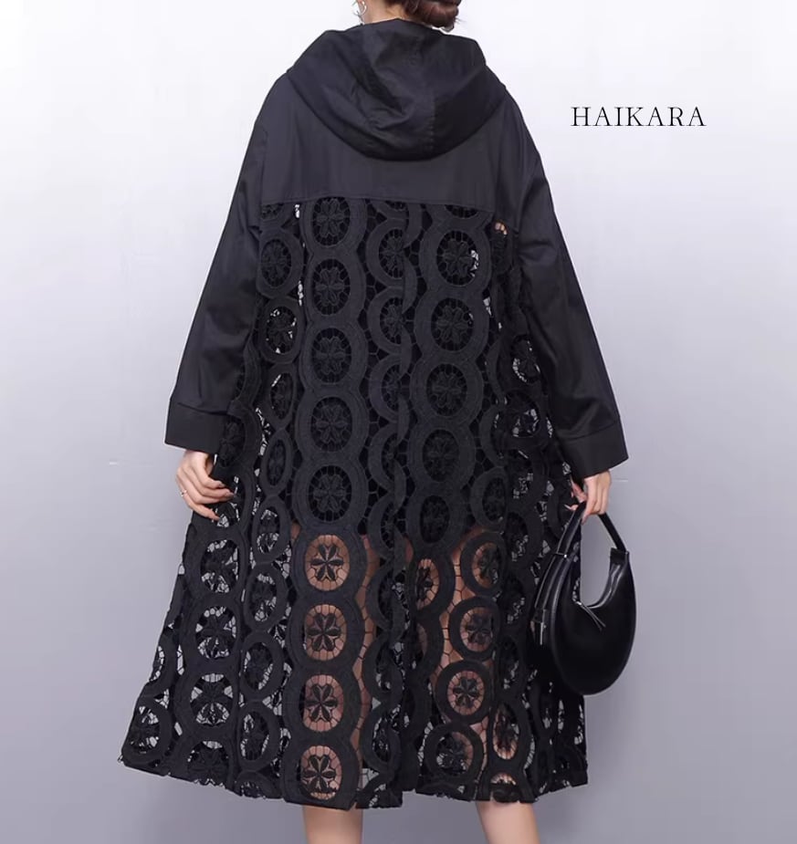 (NEW) Circle Lace Docking Hooded Long Jacket