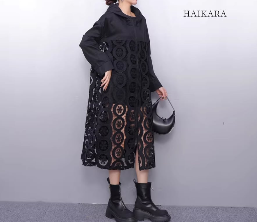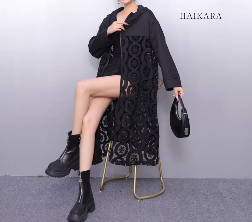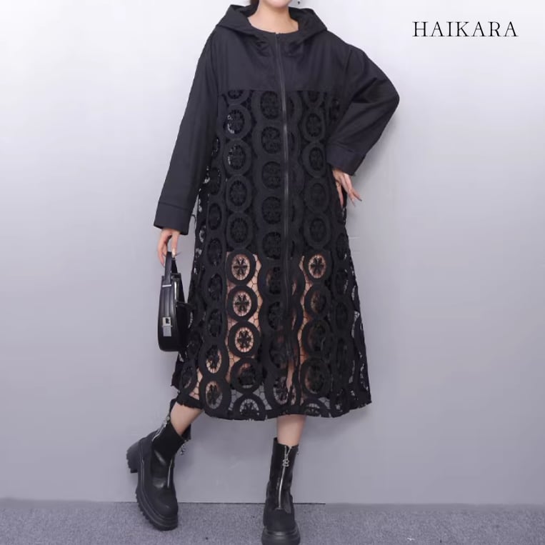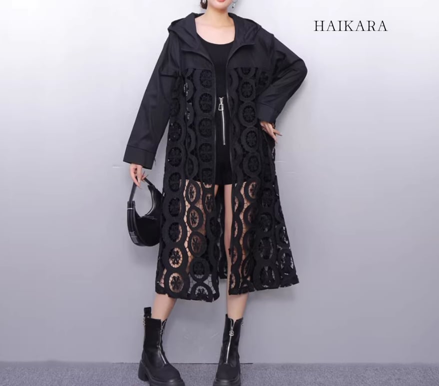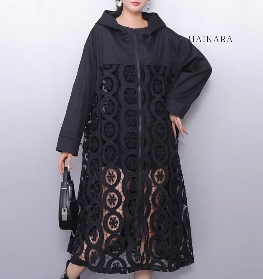 (NEW) Circle Lace Docking Hooded Long Jacket