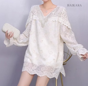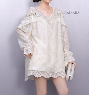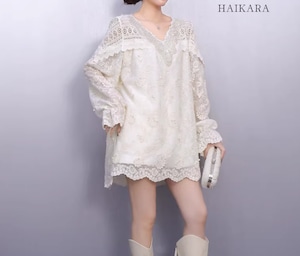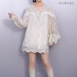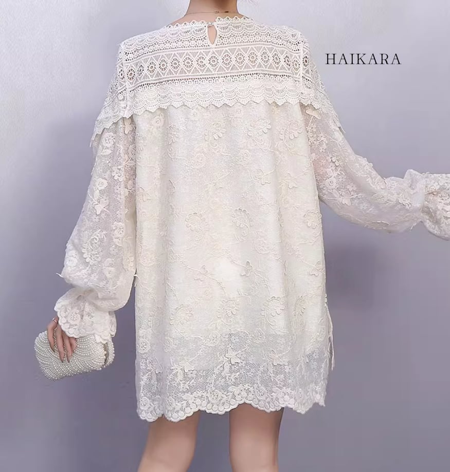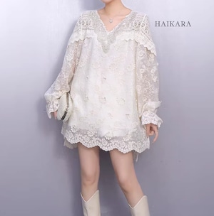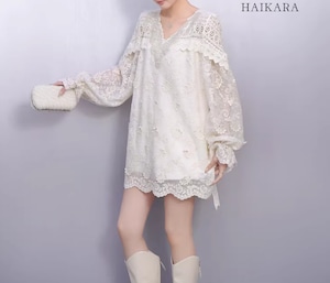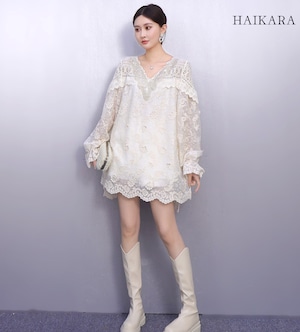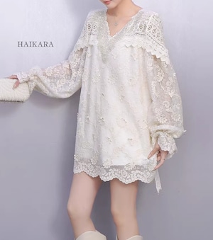 ★【 繊細なフラワーレースを贅沢に使用た、圧倒的に華やかなミニワンピースです。