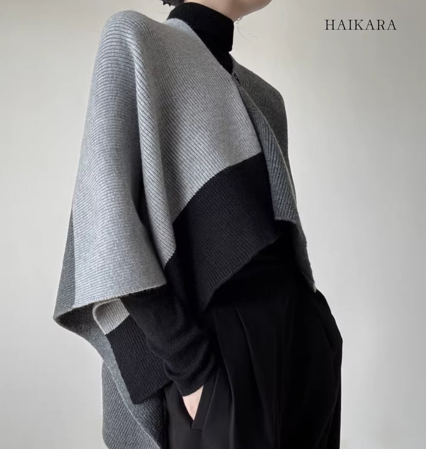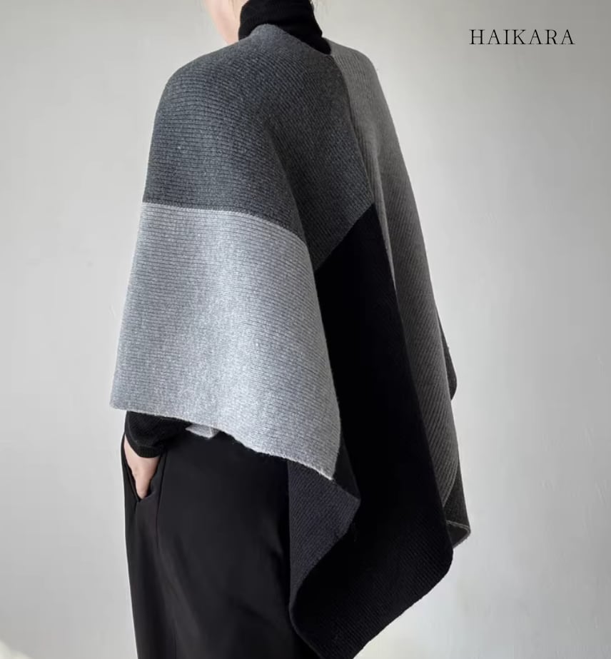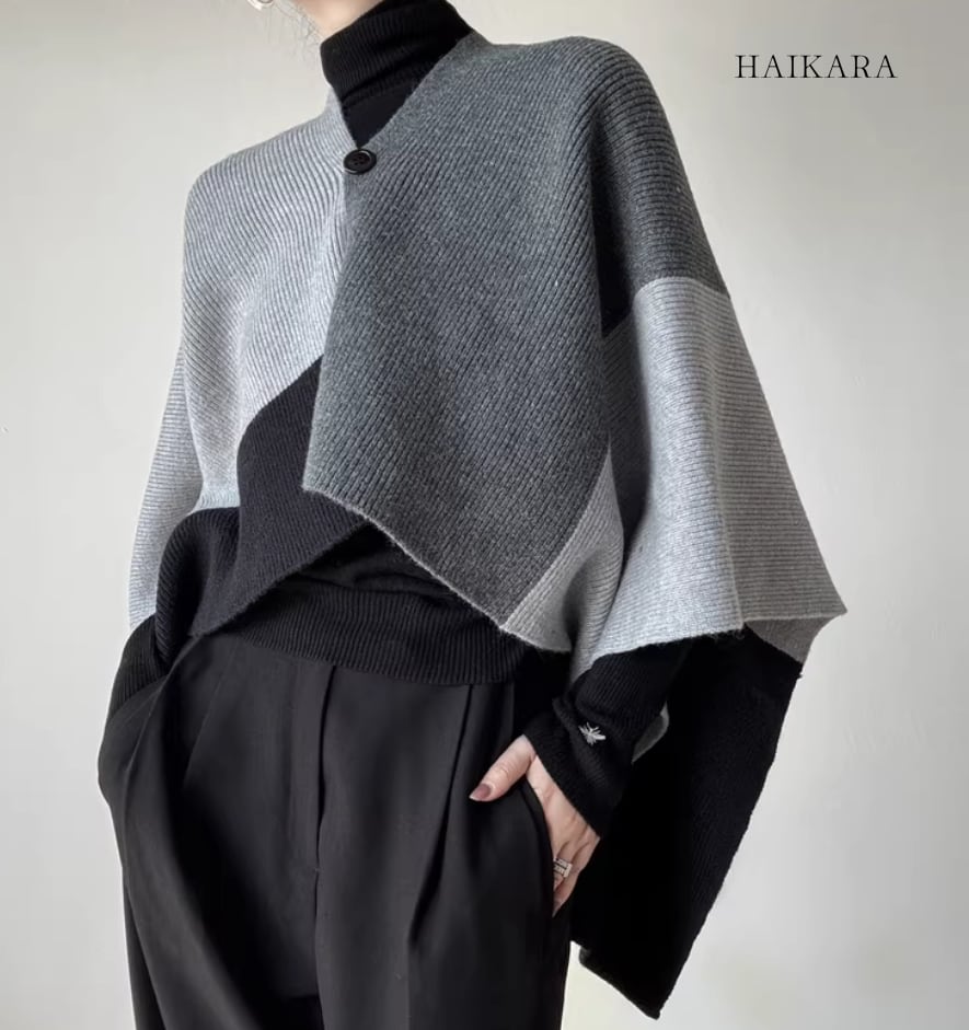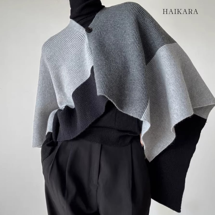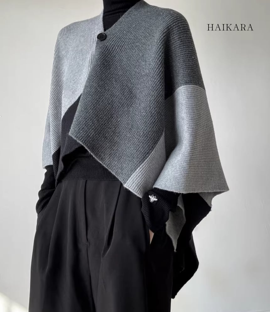 ★【 モノトーンのカラーブロックが都会的でモードな印象を与える、洗練されたデザインのニットケープです。