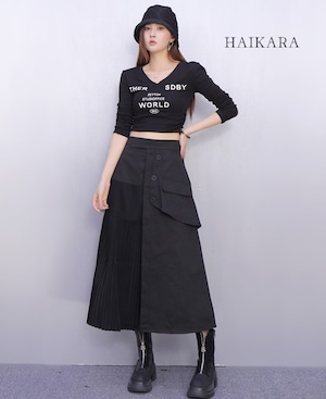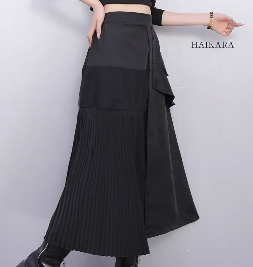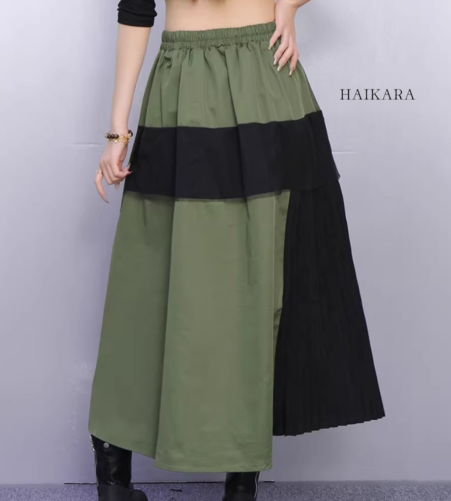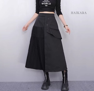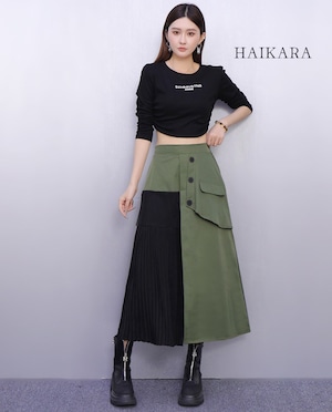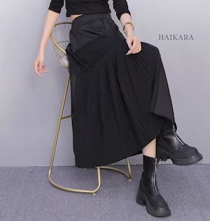 異素材ドッキング・アシンメトリープリーツスカート