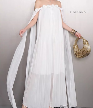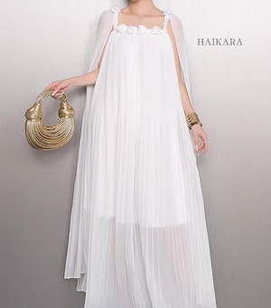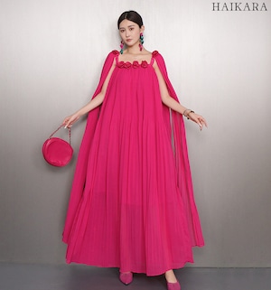 3Dフラワーコサージュ・プリーツワンピースドレス