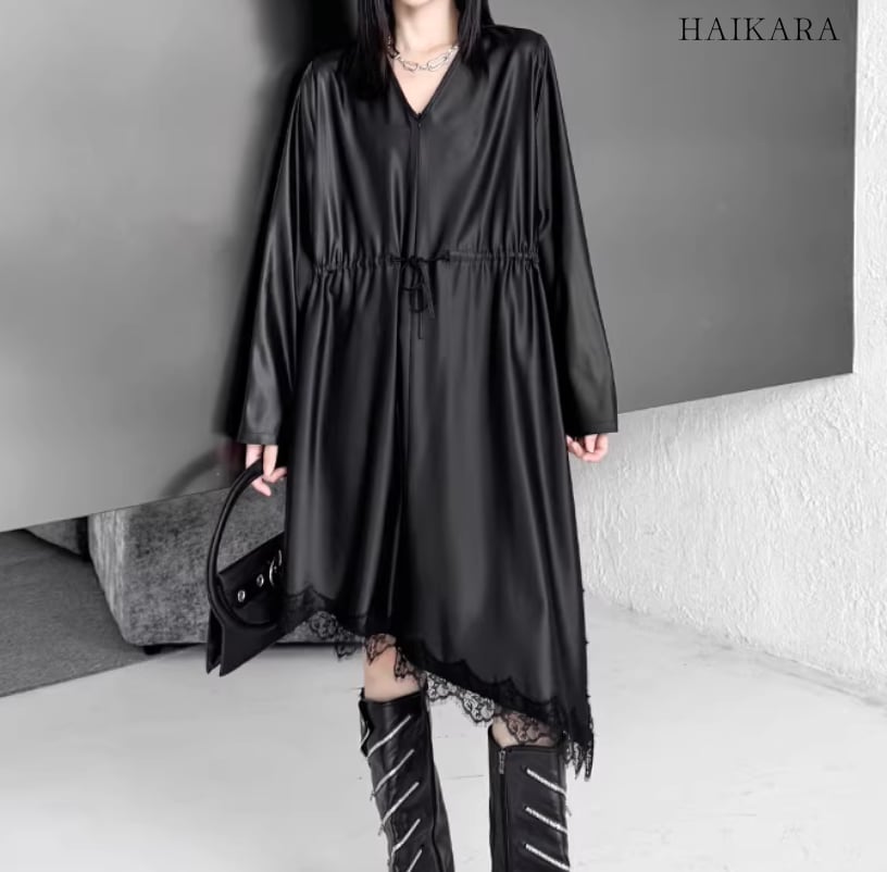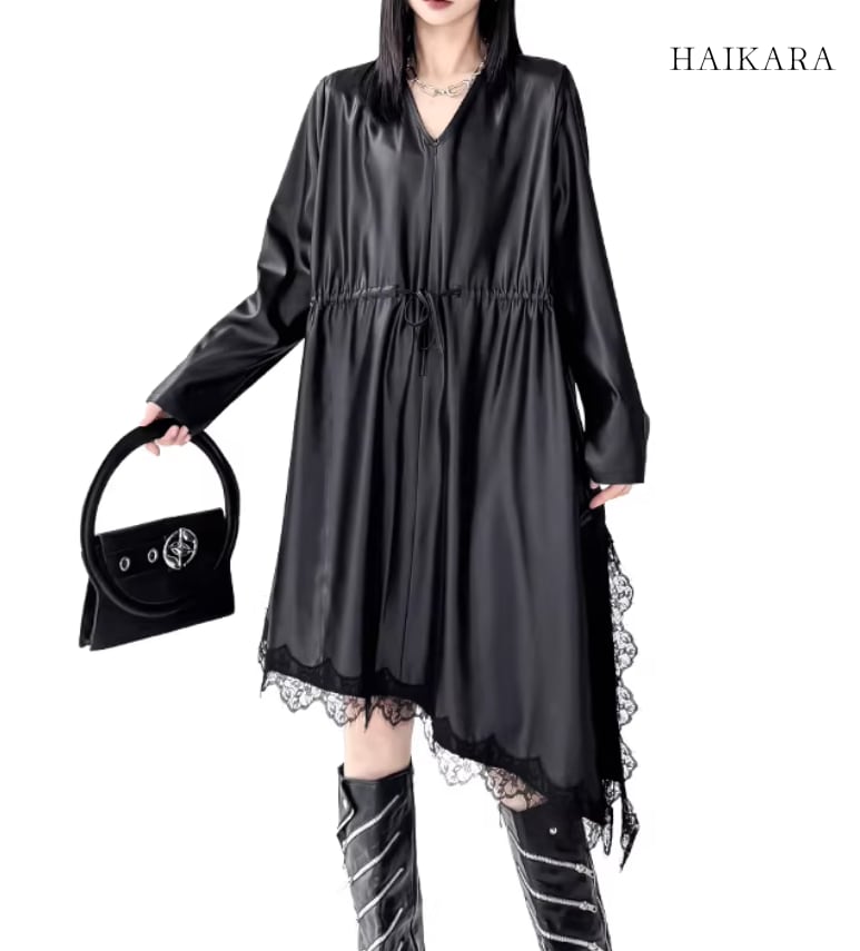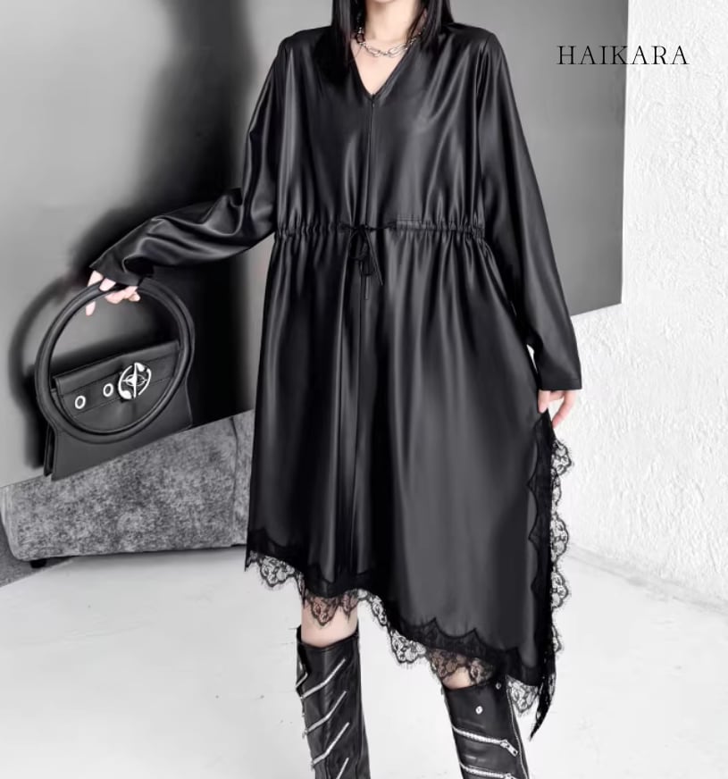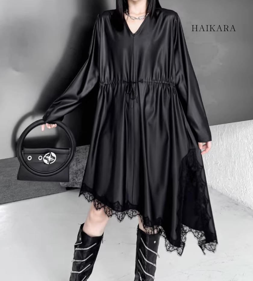 ドローストリング・イレギュラーヘム・レースワンピース