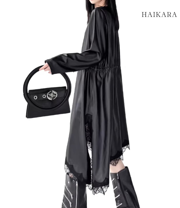大胆にカットされた裾から覗く繊細なレースが、歩くたびにエッジィな華やかさを添えてくれる、主役級のモードアイテムです。 】