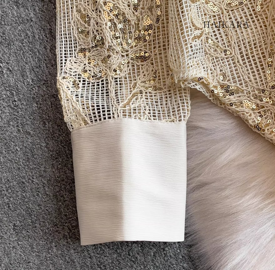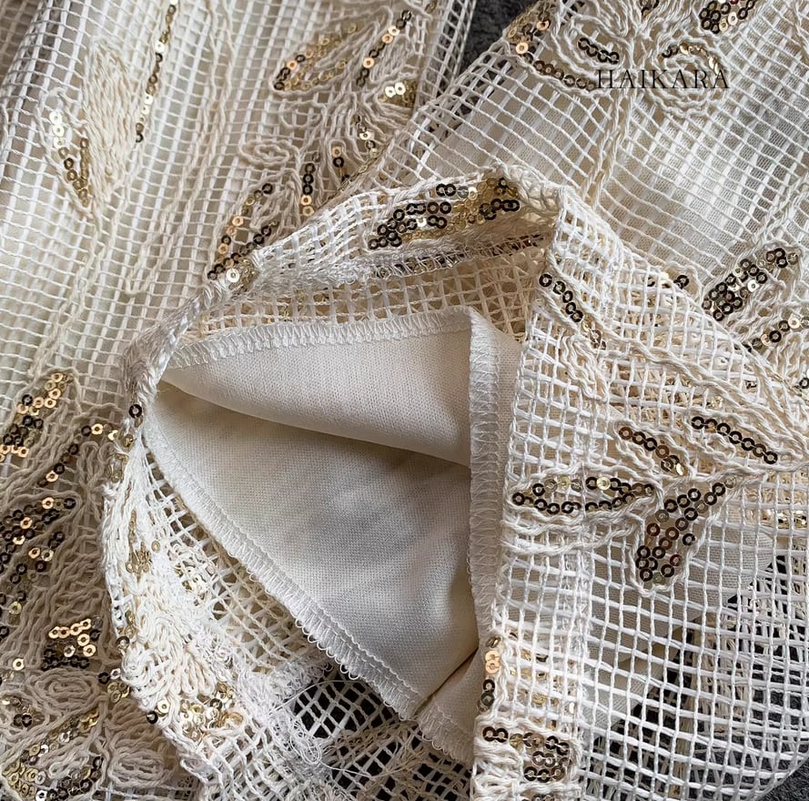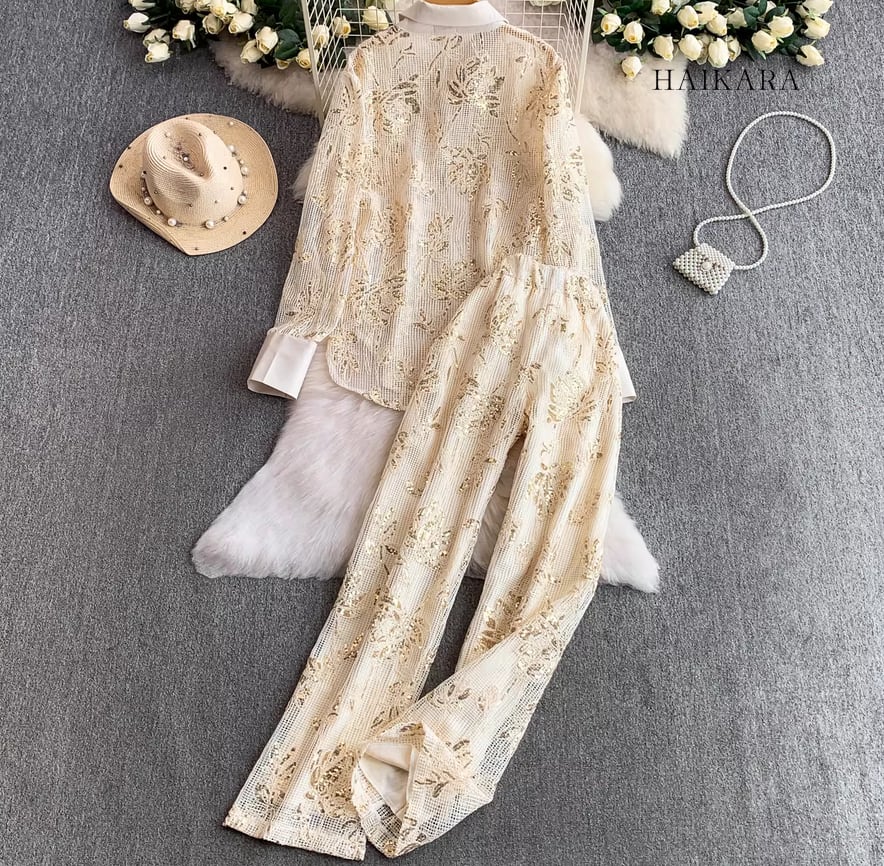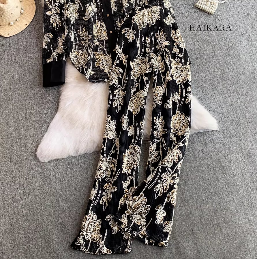ゴールデンフラワー・スパンコールメッシュ・セットアップ