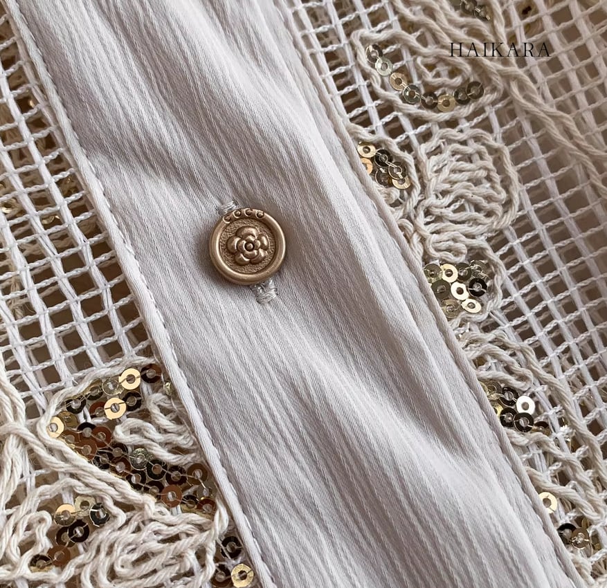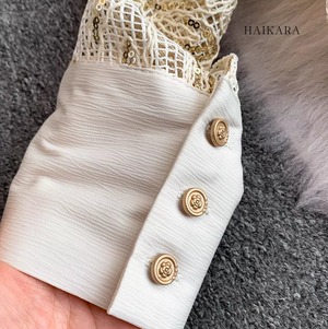 光を捉えて華やかにきらめく装飾が、ラグジュアリーで都会的なモード感を演出します。