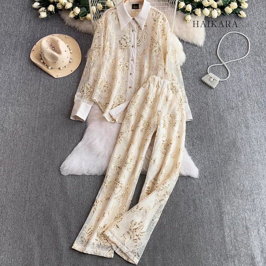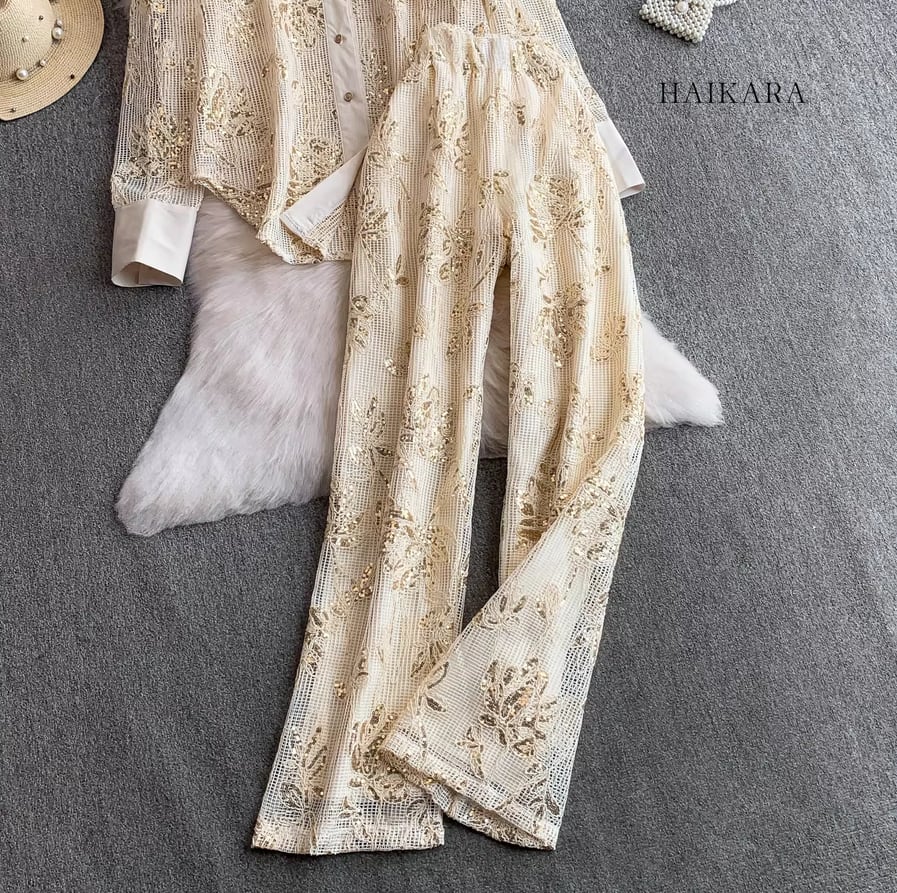 ゆったりとしたシルエットのシャツと、美しい落ち感のワイドパンツは、セットアップで纏うことで圧倒的な存在感を放ち、パーティーシーンから洗練されたデイリースタイルまで、周囲の視線を釘付けにする一着です。 】