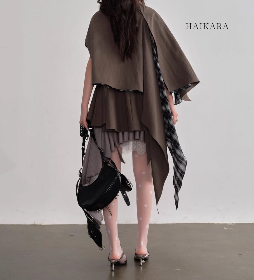 ショールの有無でガラリと表情を変えることができ、洗練されたモード感と遊び心を両立させた、圧倒的な存在感を放つ一着です。 】