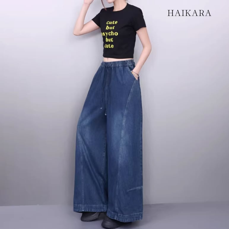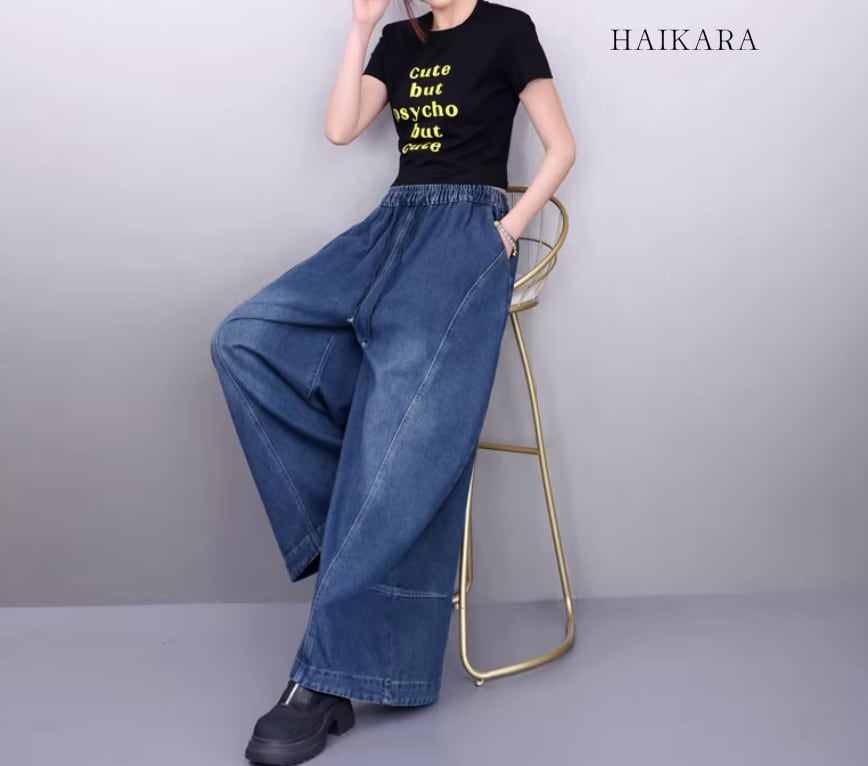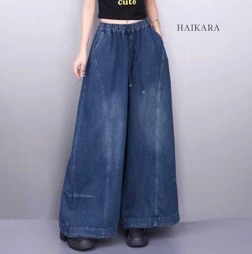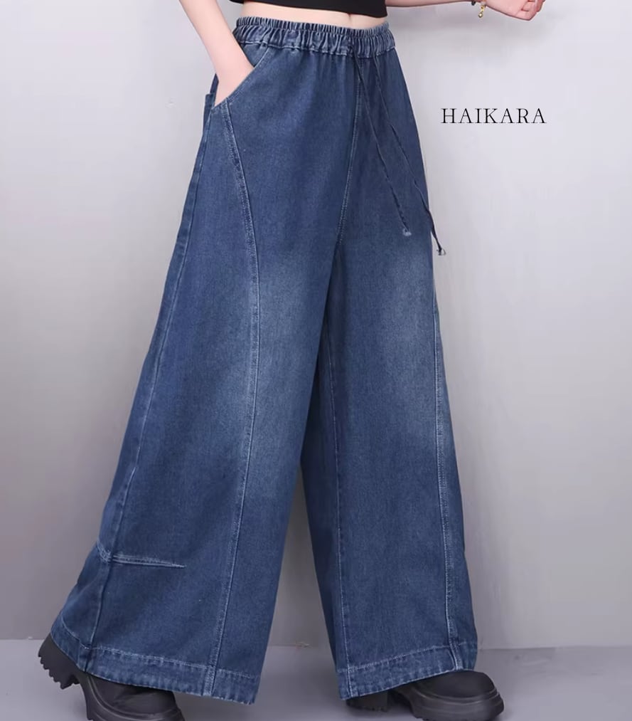 ドローストリング ワイドレッグ デニムパンツ