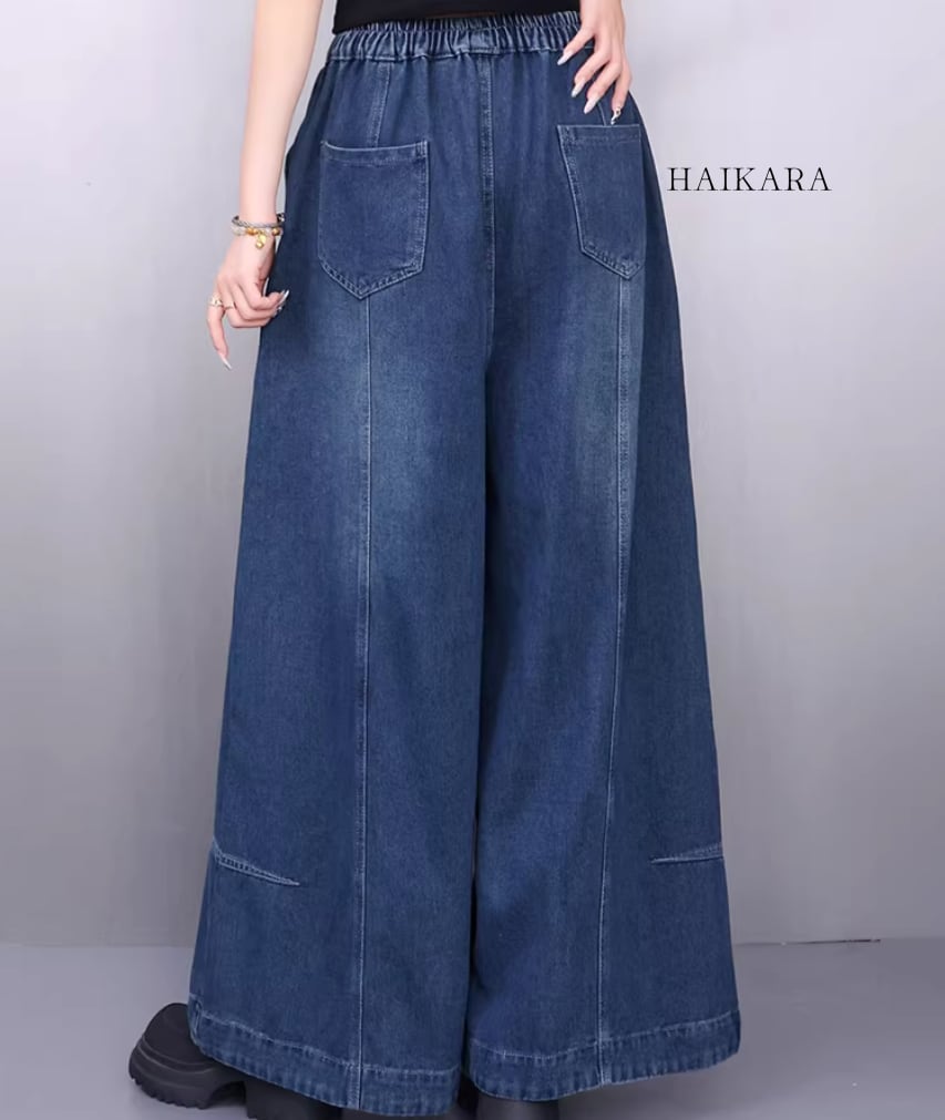 ★【 スカートのようなボリューム感のあるワイドシルエットが、リラックスした雰囲気を醸し出すデニムパンツです。