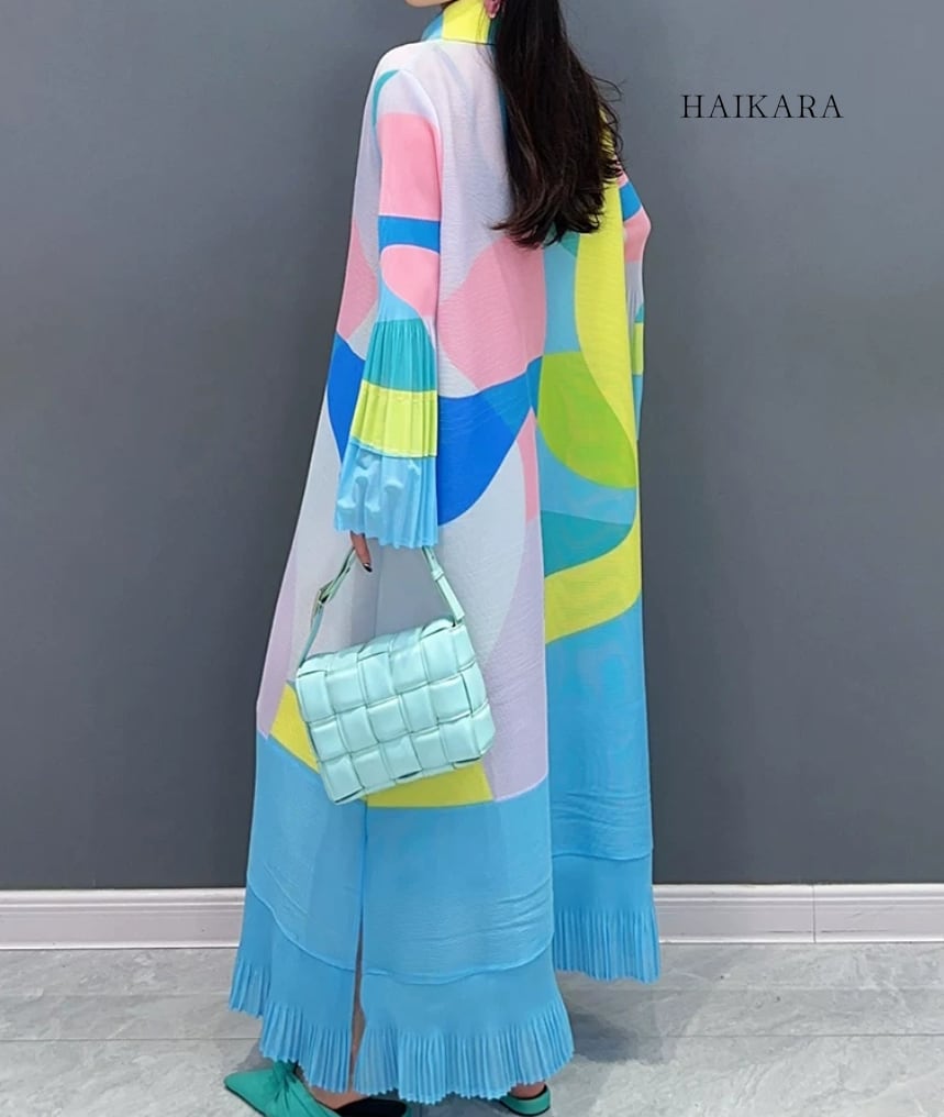 袖口と裾に施された細やかなプリーツデザインが、歩くたびに軽やかな動きとエレガントなニュアンスをプラス。