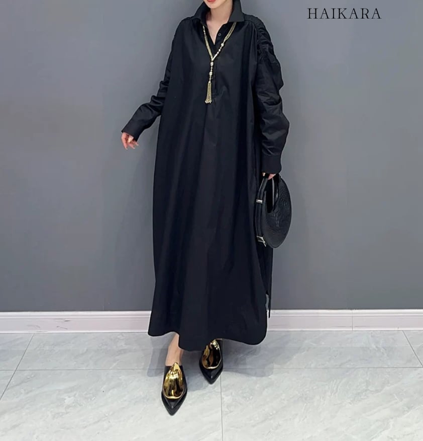 パフショルダー オーバーサイズ シャツワンピース