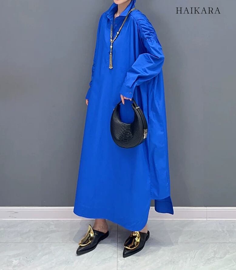 ★【 深みのある鮮やかなカラーが、クリーンで都会的なムードを放つシャツワンピースです。