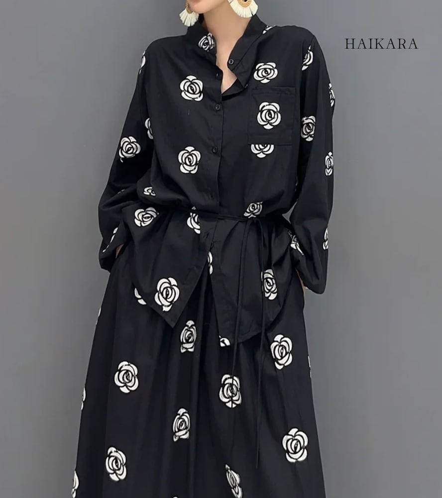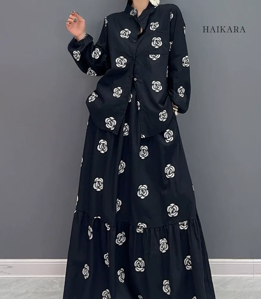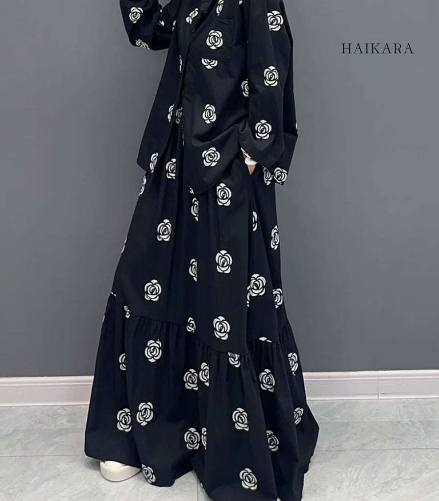 カメリアローズ グラフィック シャツ&ティアードスカート セットアップ