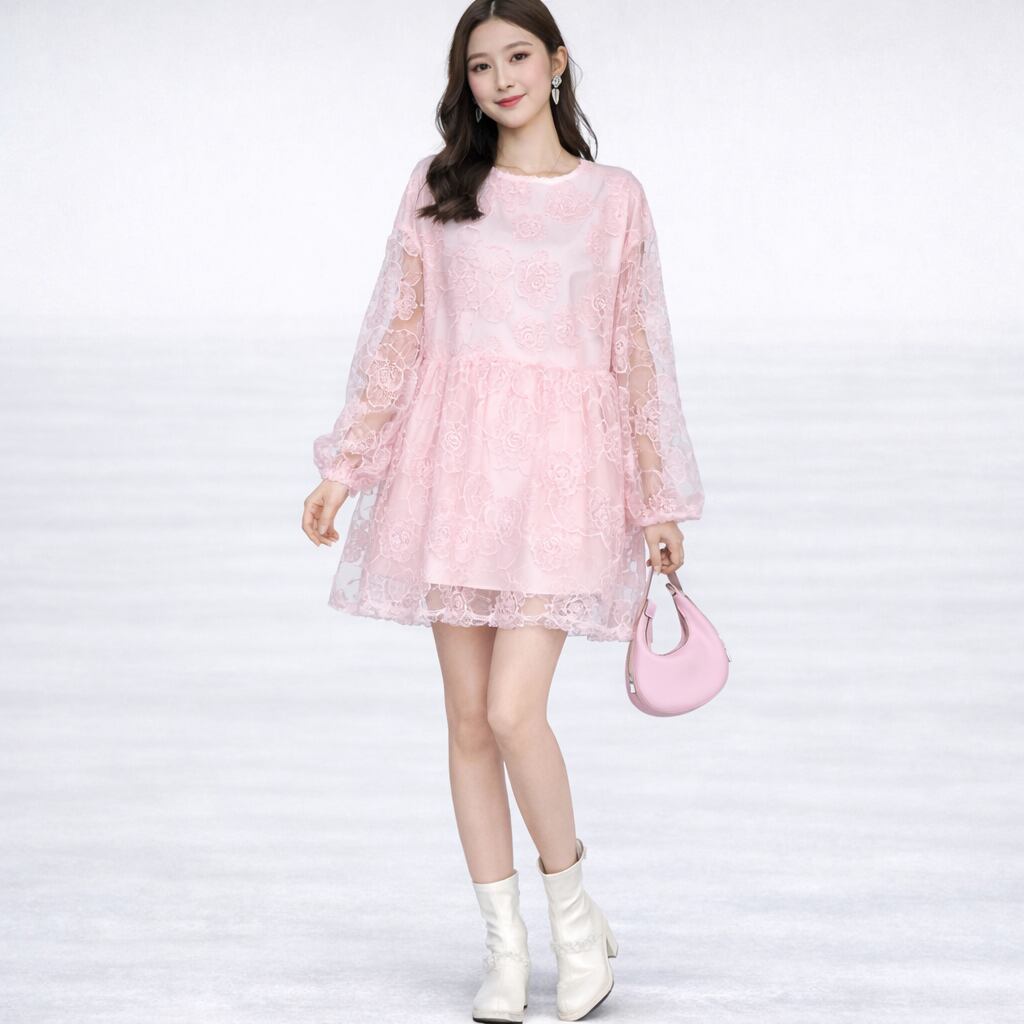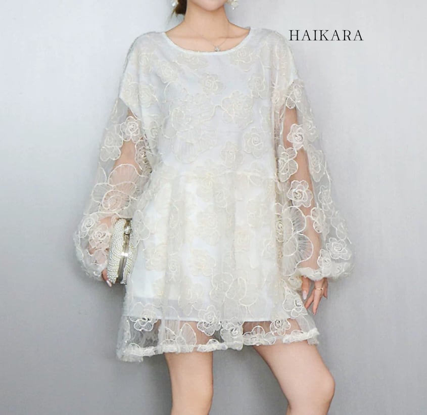 ★【 繊細なチュールに、立体的なローズモチーフを贅沢に散りばめた、ロマンティックで華やかなミニワンピースです。