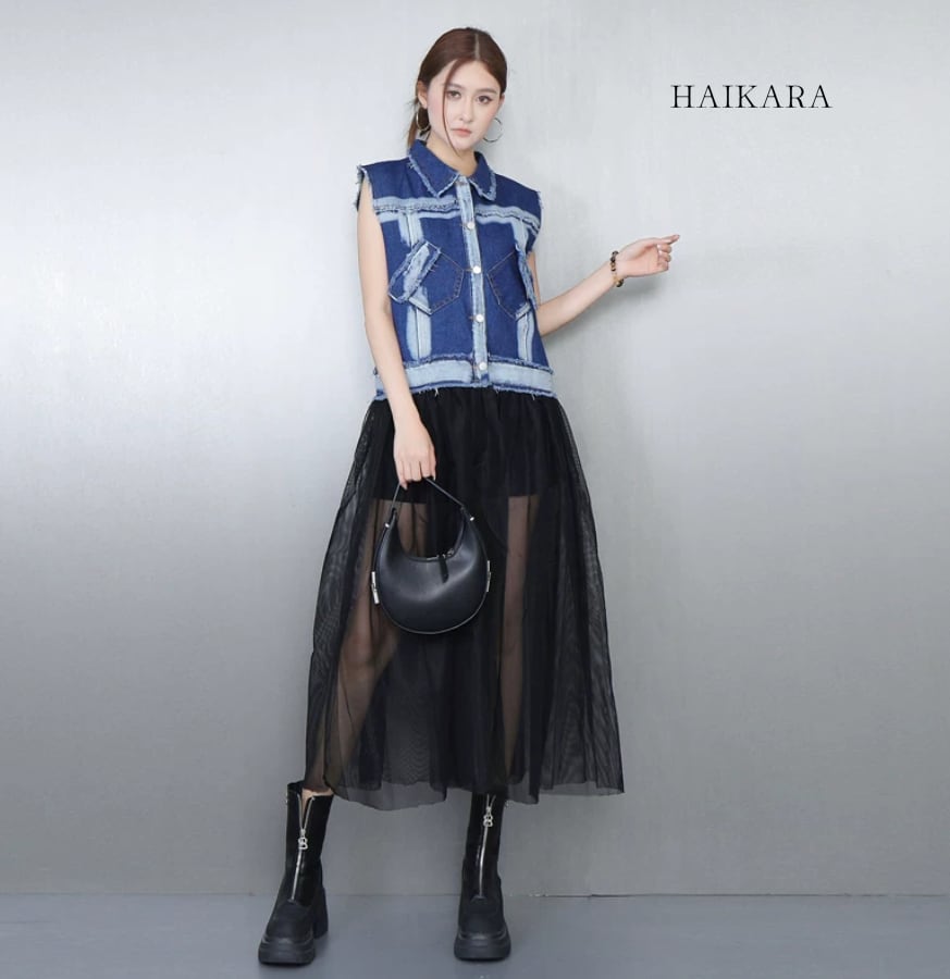 裾から広がるボリュームたっぷりのシアーチュールが、まるでスカートをレイヤードしているようなシルエットを作り出し、辛口なデニムスタイルにエレガントで幻想的なエッセンスを添えてくれる一着です。 】