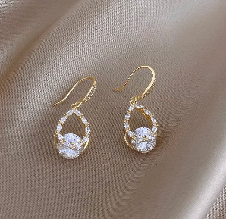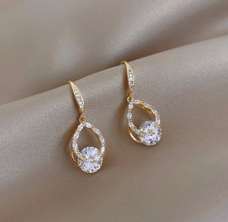 Earrings with beautiful CZ diamonds in a drop shape, simple but presentable, elegant and casual.