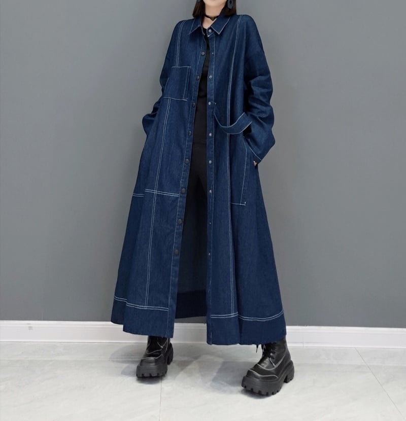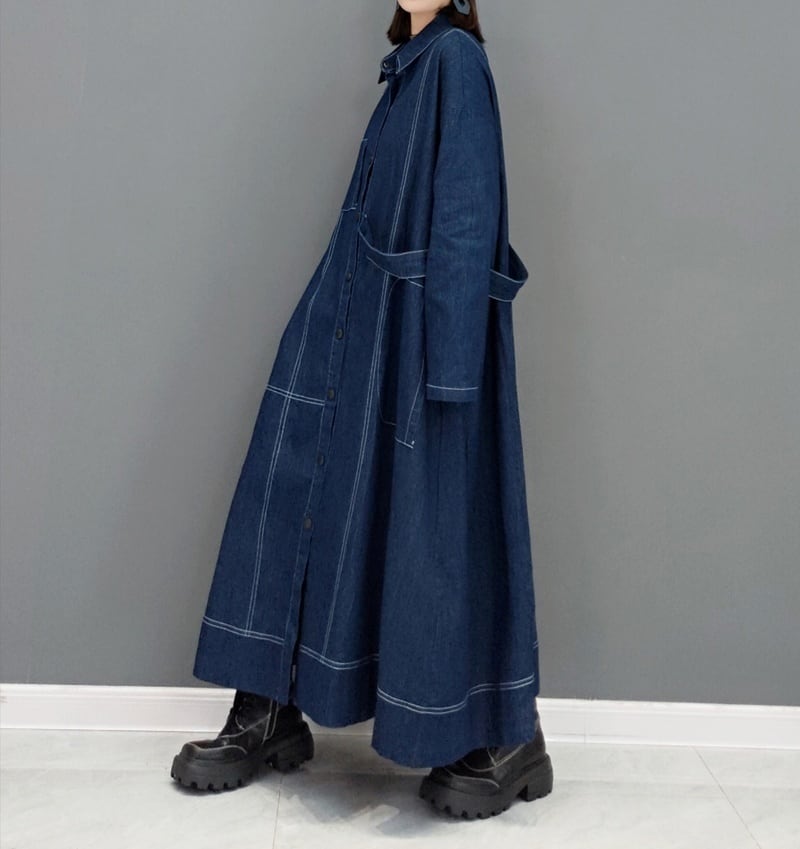 The denim fabric used throughout the design creates a natural and gentle image, and the dress is simple yet casual and cute.