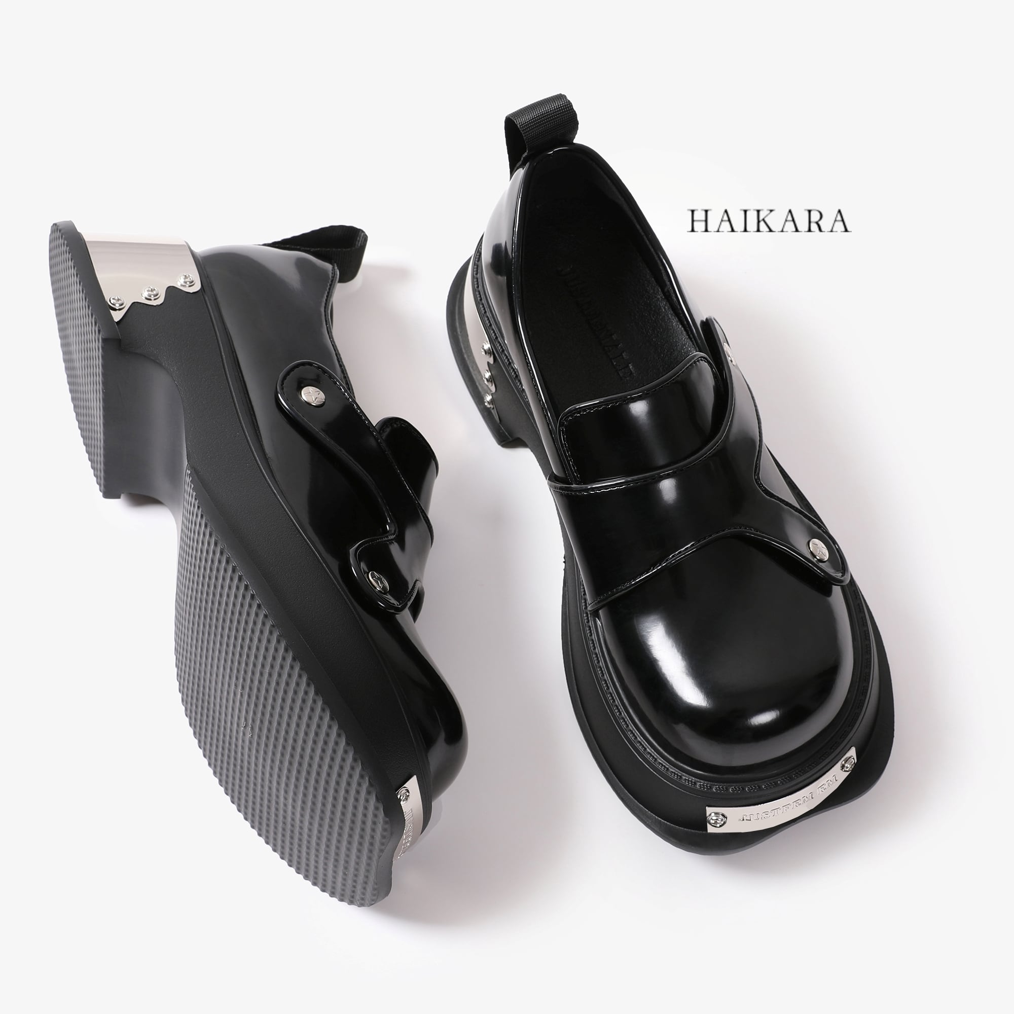 ★【 黒基調のデザインにワンポイントとしてメタルパーツをプラス、シックでおしゃれ感あふれるシューズ 】