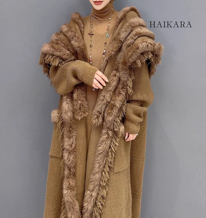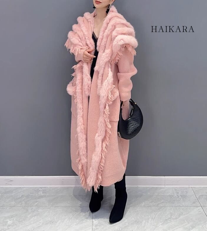 ★【 ニット生地に起毛素材を合わせた暖かなデザイン、ゴージャスな風合いを感じさせるコート 】