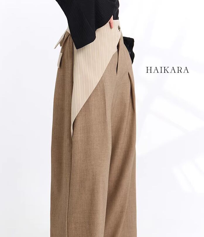 ★【 2色の生地を使用したバイカラーデザイン、落ち着いた色合いのカジュアルボトムス 】
