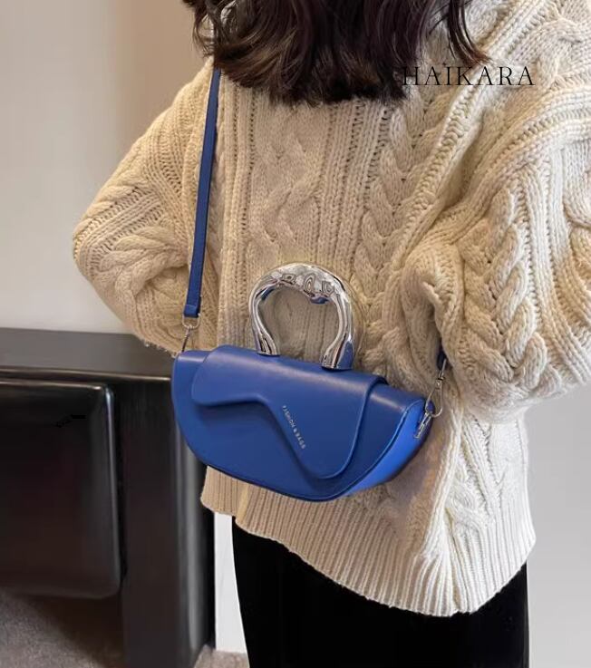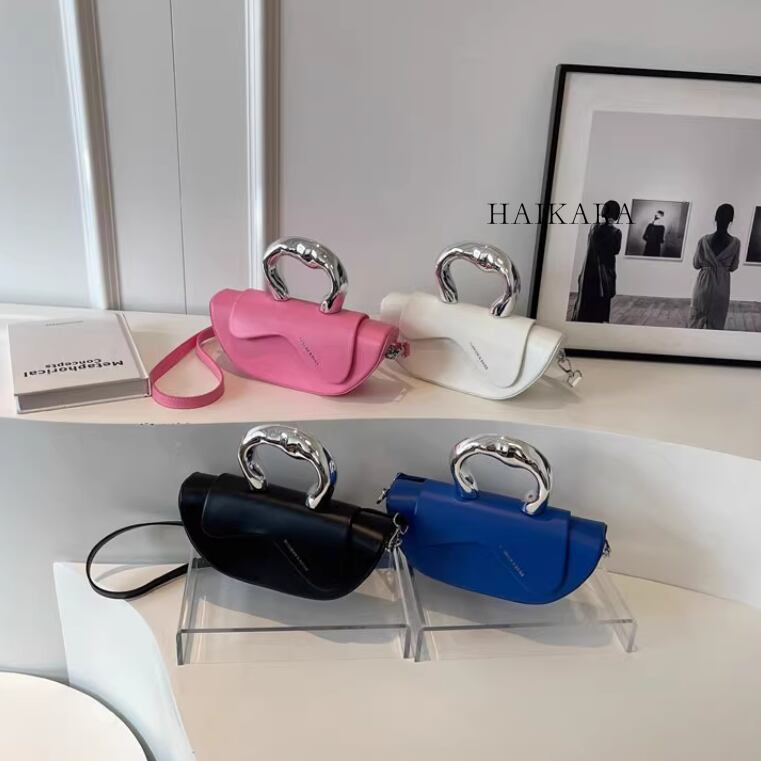 ★【 PU生地を使用した高級感のあるデザイン、メタル製のハンドル付きの丸みを帯びたショルダーバッグ 】