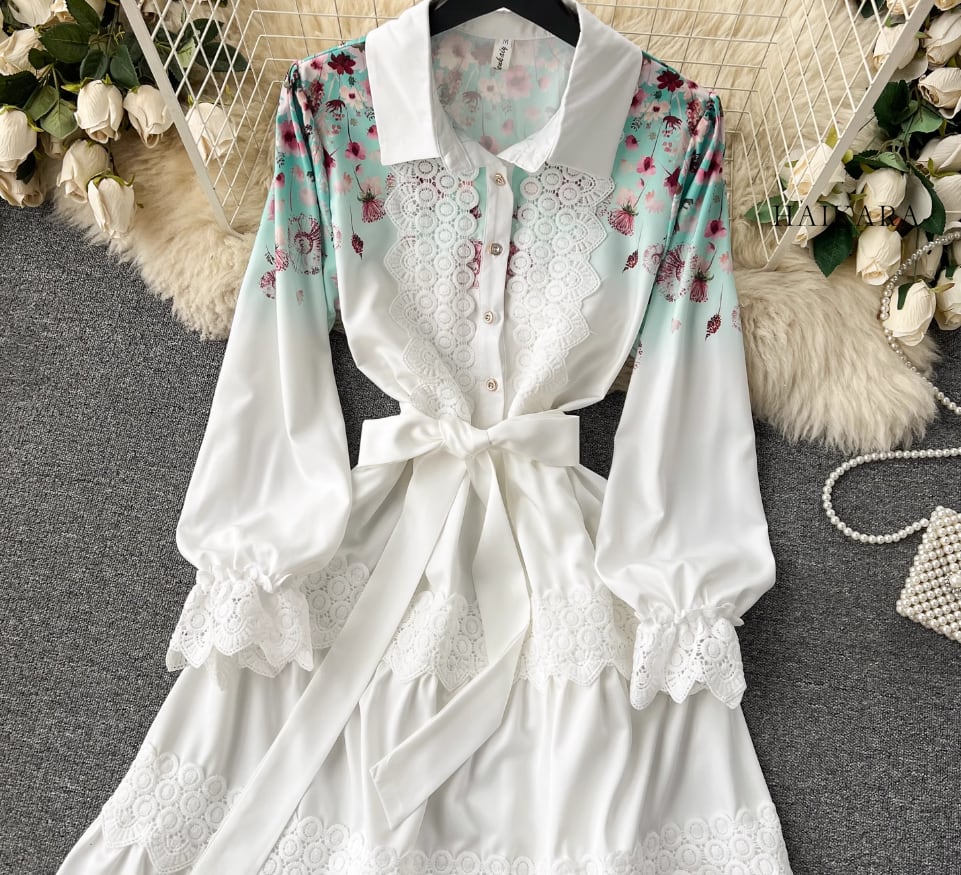 ★【 花腹を部分的に配したグラデーションカラーデザイン、華やかでキュートなドレスのようなワンピース 】