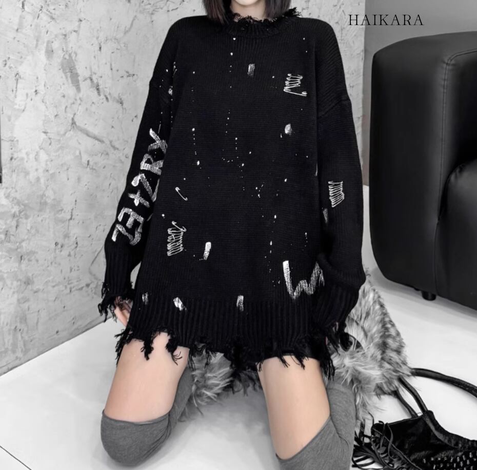 ★【 ほつれ加工を施した生地にペイントデザインを取り入れたクールなデザイン、ファッションのアクセントになるトップス 】