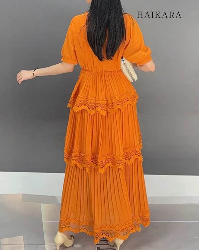 ★【 フリルデザインを使用した華やかな見た目、レトロスタイルのエレガントなワンピース 】
