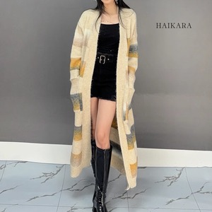 【【Cute design with colorful stripes, easy to match with casual style, long length cardigan】 】 【Colorful design with colorful stripes, easy to match with casual style】 【Size